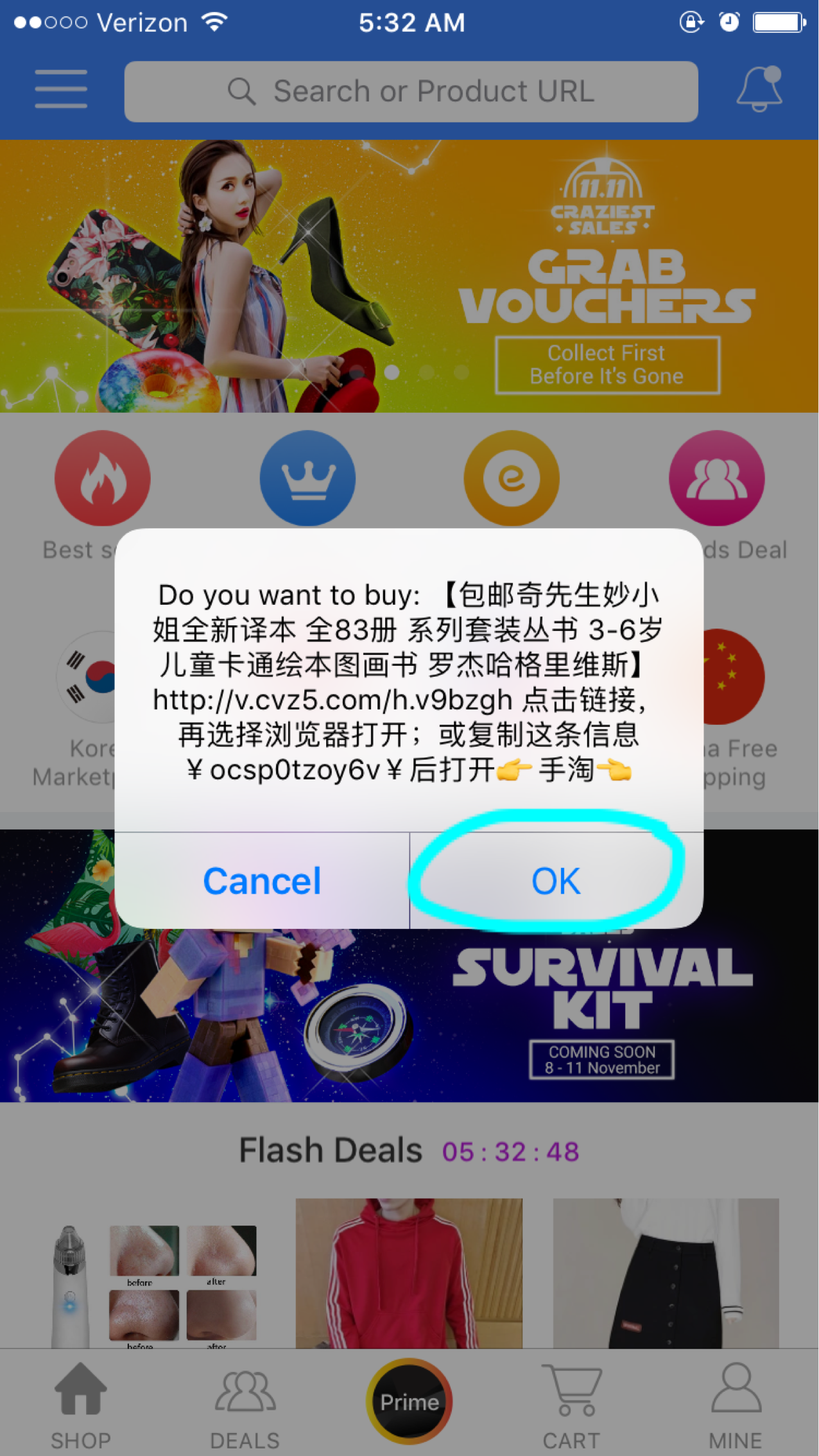 After copying the link, hop back to the EZBuy app. A message will automatically appear asking if you want to buy the item. Click OK to add it to your shopping cart.