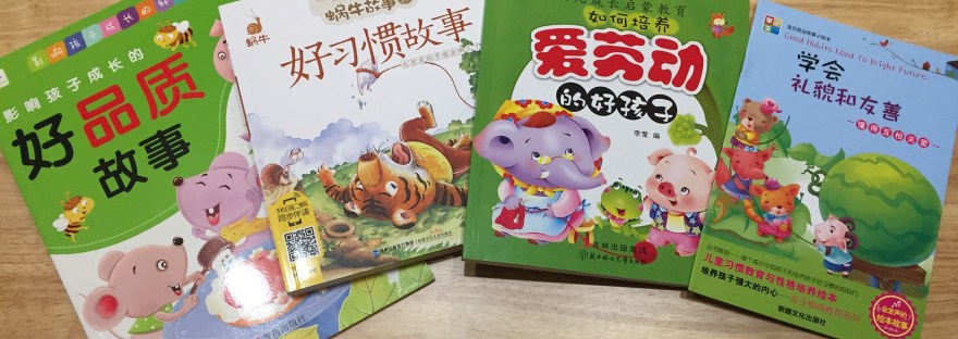 A large percentage of Chinese books are about how to be a good kid and have good manners. If your child is used to English books with funny and exciting adventures he will not like these. Because BORING.