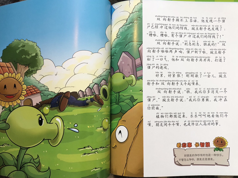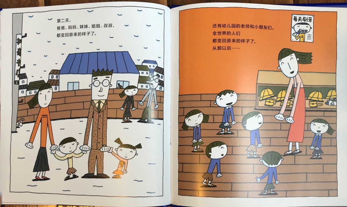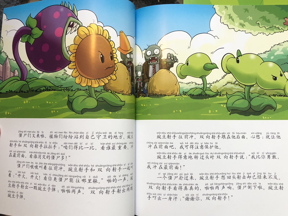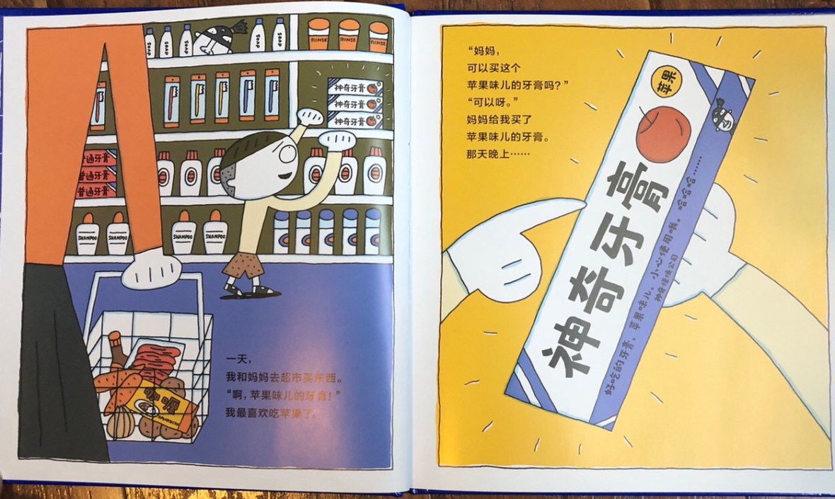 These books are designed for parents to read to their children (亲子阅读). Picture books are large and have colorful pictures on every page accompanied by a few lines of text. The print tend to be small and without pinyin because it’s assumed that it will be read by adults.