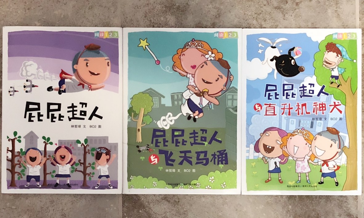 Don’t be discouraged even if you have an older child who barely understands Chinese. Ten months ago, my son didn’t know a single word of Chinese and now he is able to understand some bridge books like 屁屁超人. The way to rapidly increase comprehension is start with really easy books like 鼠小弟 Little Mouse series and to keep reading slightly harder books every day. I also do repeated reading with him, e.g. the first time we read it I might translate portions into English. Then second and third time we read it, I translate less and less until he can completely understand Chinese.